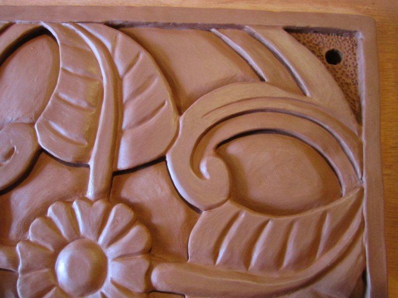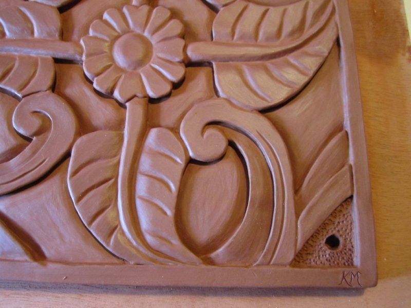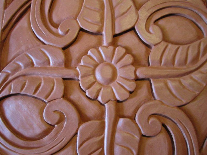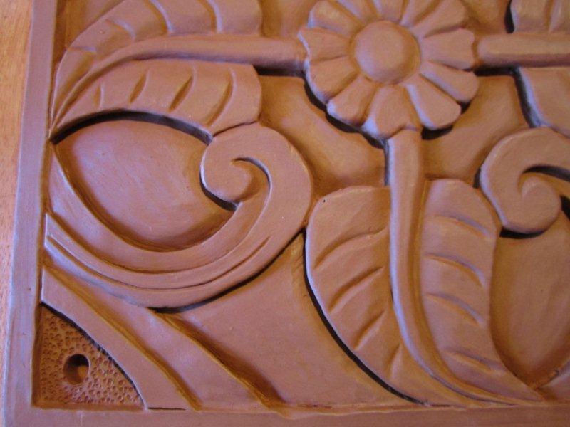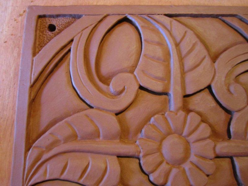 Gravure plaque bas relief… fleur et feuilles